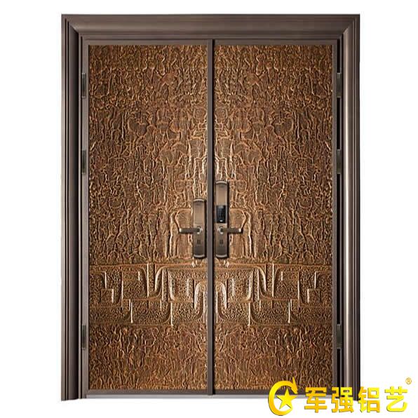 時間:2020-07-25 14:44:33 次數:83 來源:軍強鑄鋁門本款豪華別墅雙開門,型號是3285,門面采用工藝,門面采用8——12mm硬鋁合金鑄造面板精雕或整板鑄造制作而成。