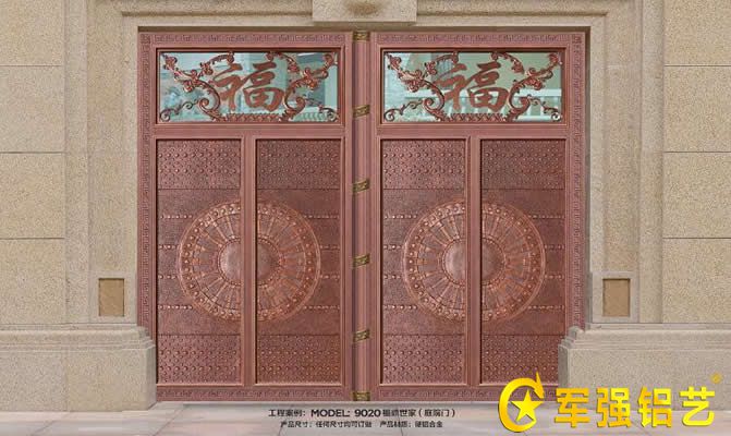 時間:2020-05-08 13:04:17 次數:314 來源:軍強庭院門本款鑄鋁庭院門,型號是6870,任何尺寸均可定做,鏤空門扇采用各種尺寸鋁型材及鋁花拼接而成,實心門扇采用整體鑄鋁板而成。