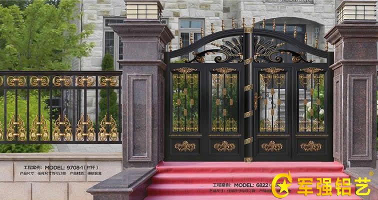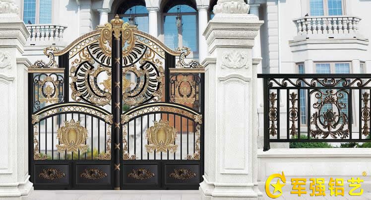 時間:2020-05-08 13:12:03 次數(shù):417 來源:軍強庭院門本款歐式庭院大門,型號是6863,任何尺寸均可定做,鏤空門扇采用各種尺寸鋁型材及鋁花拼接而成,實心門扇采用整體鑄鋁板而成。