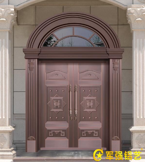 時間:2020-05-08 16:45:50 次數:52 來源:軍強銅門本款圓弧對開銅門,型號是M-9153,門面采用精工拼接工藝,門面采用8——12mm硬鋁合金鑄造面板精雕或整板鑄造制作而成。